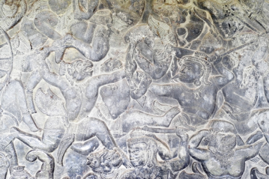 This bas relief is crucial to the meaning of Angkor Wat, which, as a mausoleum for King Suryavarman II, represents his effort to ally himself with Vishnu’s role as the sustainer of the ordered universe.