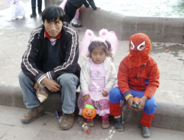 Before dinner at the hotel, I walked through the plaza and watched as the local children celebrated Halloween around the Inka fountain.