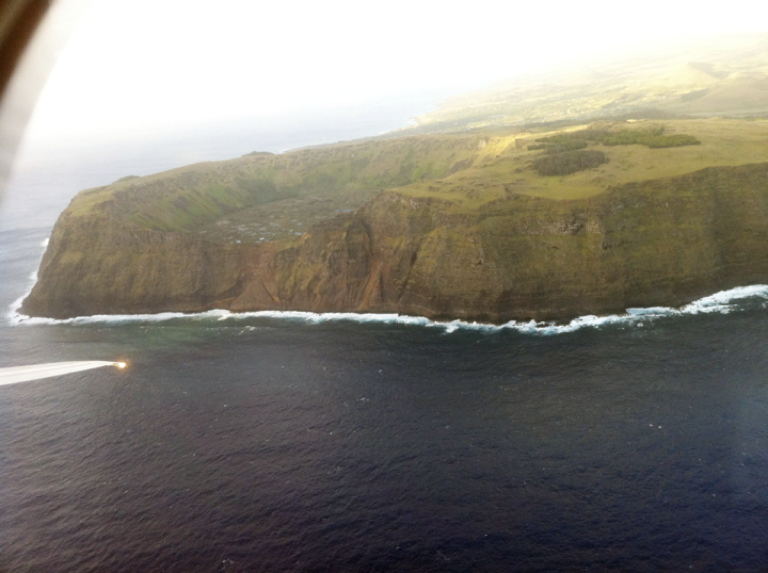 Late in the afternoon, our pilot announced that he had been given permission to twice circle Easter Island so that we could all see it from the air. Quite a privilege!