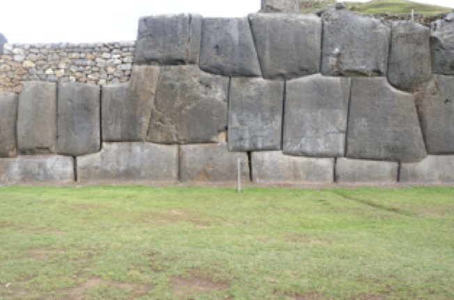 After a buffet lunch at the hotel, we journeyed a thousand feet up a mountainside to a vast field where the Saqsaywaman (“Sexywoman” is offered as a mnemonic device) stands. This is a mammoth layout of Inka temple sites that served as the ritual center of the empire. We walked a kilometer across the fields, awed by the amazing stone architecture in which limestone blocks weighing ten tons are fitted together so precisely that not even a piece of paper can pass through the joints. A special feature of Inka architecture, seen and mentioned again and again over these two days, is the use of interlocking and dovetailed blocks of stone (giant Legos?), designed to resist shifting during the devastating earthquakes that occur here roughly once a century. The Inka sites (including Machu Picchu) have all survived, while later Spanish architecture has frequently been destroyed.