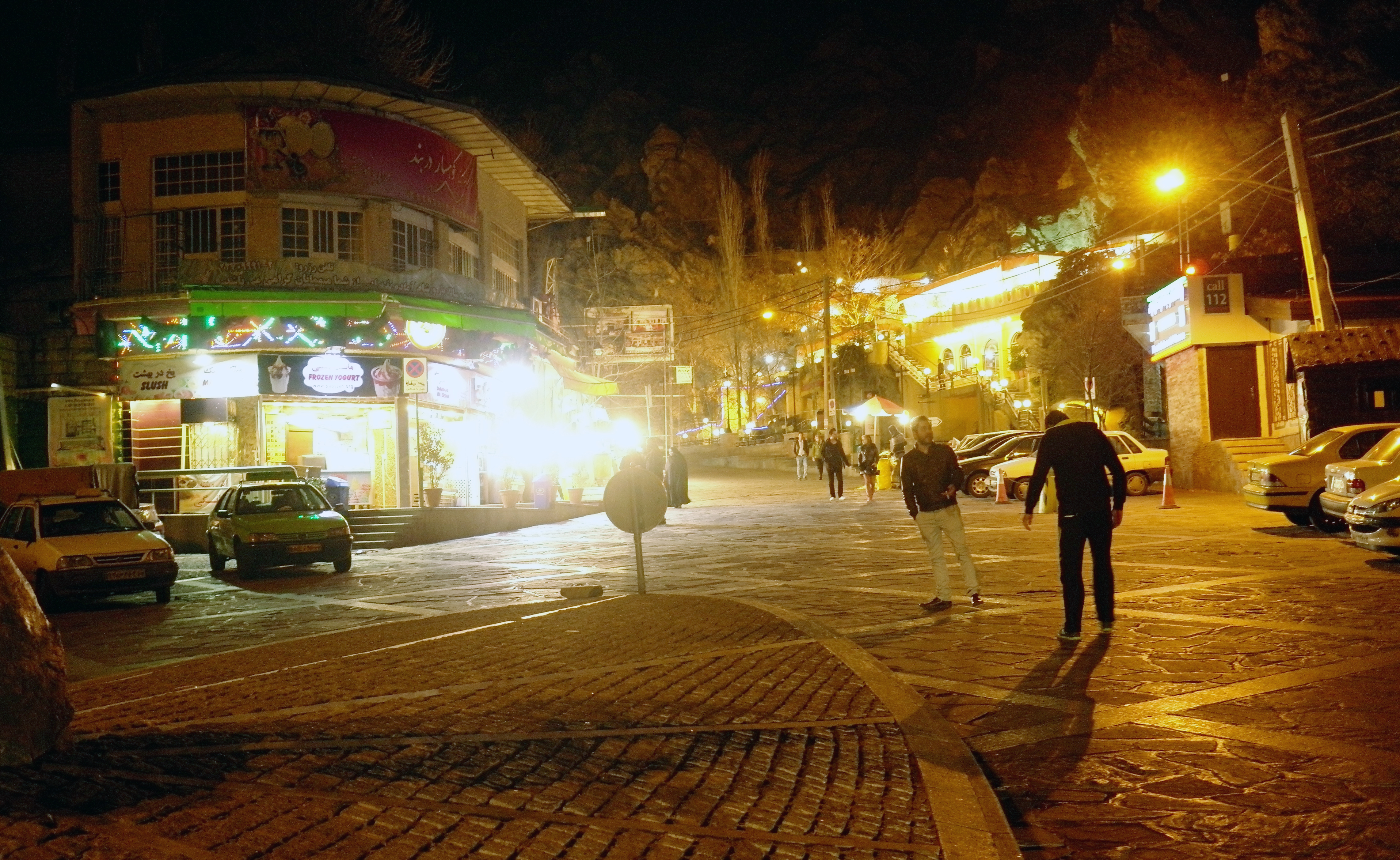After the square, we headed north to the Darband district. On the way, we transited a Vali Asr Street, which is bordered by trees that are illuminated by lines of roadside lights changing colors every few seconds: