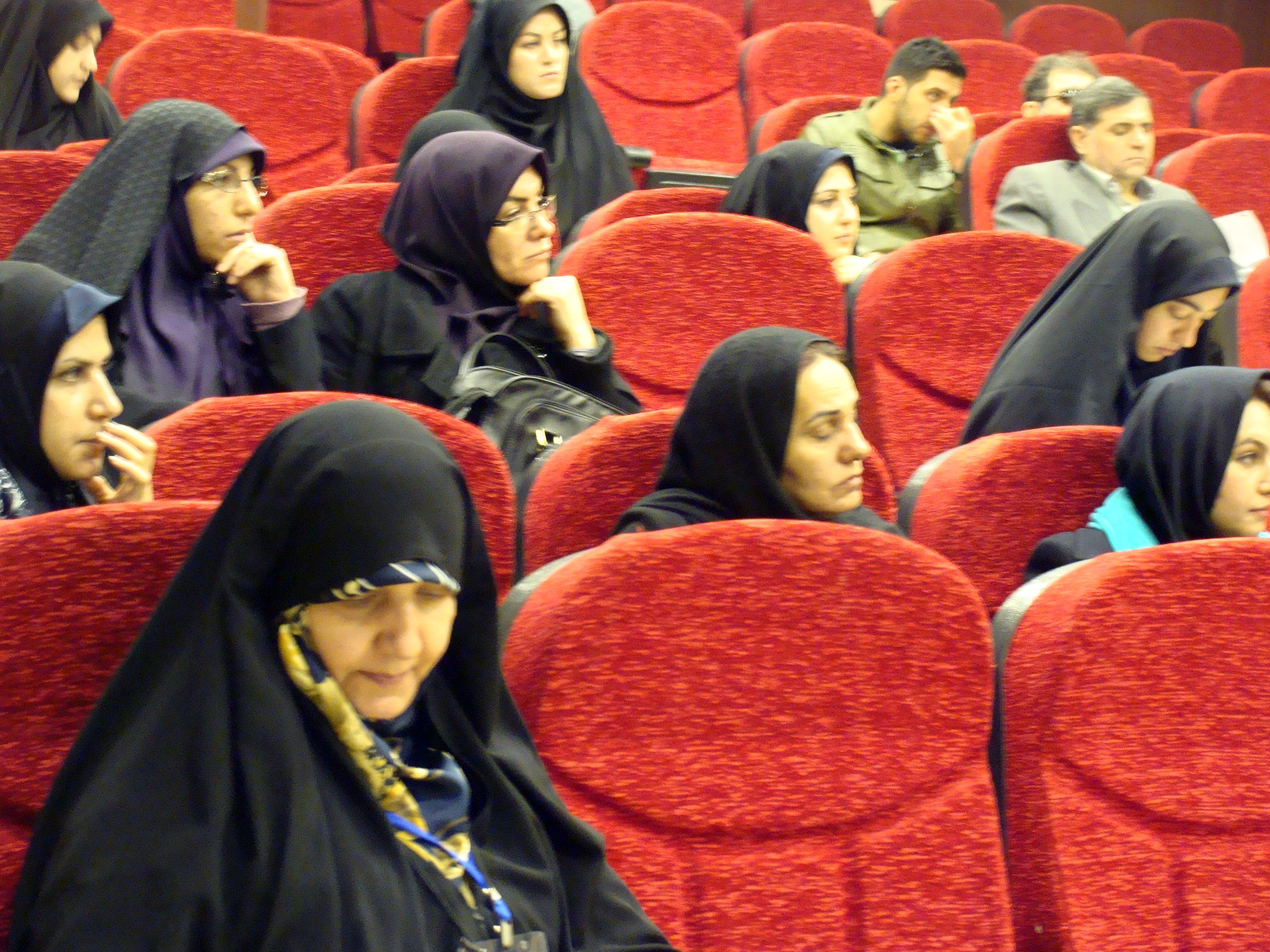 At the coffee break, I was able to chat briefly with one of the women scholars attending (I learned her name is Zohreh), who raised a particularly good question during discussion. She’s here in the middle: